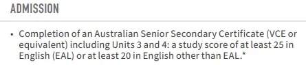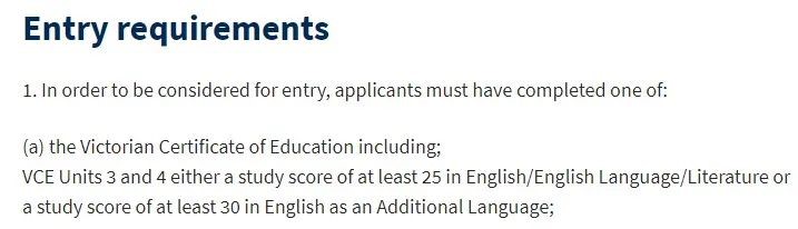 那么,下面就以墨尔本大学为例,一起来了解不同专业,除了EAL 30分,English 25分以外的入学要求吧!